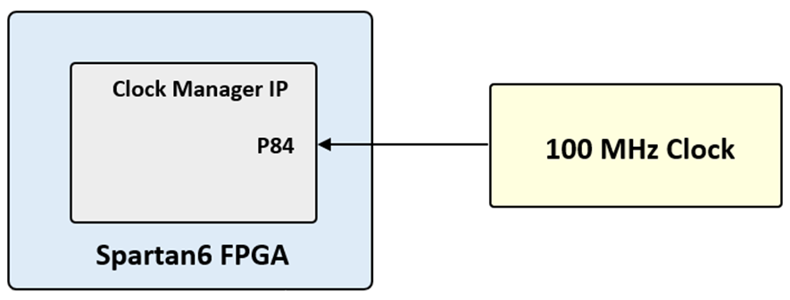 The Spartan6-Mini includes a single 100MHz oscillator connected to pin P84 can drive MMCMs or PLLs to generate clocks of various frequencies and with known phase relationships that may be needed throughout a design. Some rules restrict which MMCMs and PLLs may be driven by the 100MHz input clock. For a full description of these rules and of the capabilities of the Spartan6 clocking resources
