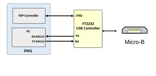 The ZINKY includes an FTDI FT2232HQ USB-UART bridge (attached to connector J11) that lets you use PC applications to communicate with the board using standard Windows COM port commands. Free USB-COM port drivers, available from www.ftdichip.com under the “Virtual Com Port” or VCP heading, convert USB packets to UART/serial port data. Serial port data is exchanged with the Zynq using a two-wire serial port (TXD/RXD). After the drivers are installed, I/O commands can be used from the PC directed to the COM port to produce serial data traffic on the Zynq pins. The port is tied to PS (MIO) pins and can be used in combination with the UART 1 controller.