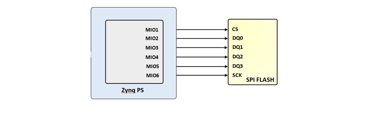 The ZINKY  features a 4-bit SPI (quad-SPI) serial NOR flash. The Spansion S25FL128S is used on this board. The Multi-I/O SPI Flash memory is used to provide non-volatile code and data storage. It can be used to initialize the PS subsystem as well as configure the PL subsystem (bitstream). Winbond Flash File System (FFS) for use after booting the Zynq-7000 AP SoC.