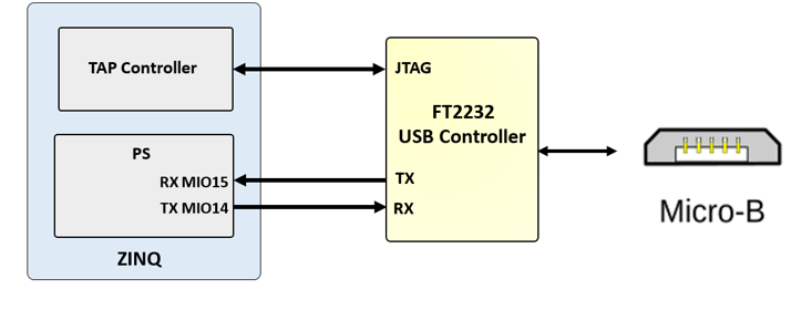 The ZINKY includes an FTDI FT2232HQ USB-UART bridge (attached to connector J11) that lets you use PC applications to communicate with the board using standard Windows COM port commands. Free USB-COM port drivers, available from www.ftdichip.com under the “Virtual Com Port” or VCP heading, convert USB packets to UART/serial port data. Serial port data is exchanged with the Zynq using a two-wire serial port (TXD/RXD). After the drivers are installed, I/O commands can be used from the PC directed to the COM port to produce serial data traffic on the Zynq pins. The port is tied to PS (MIO) pins and can be used in combination with the UART 1 controller.